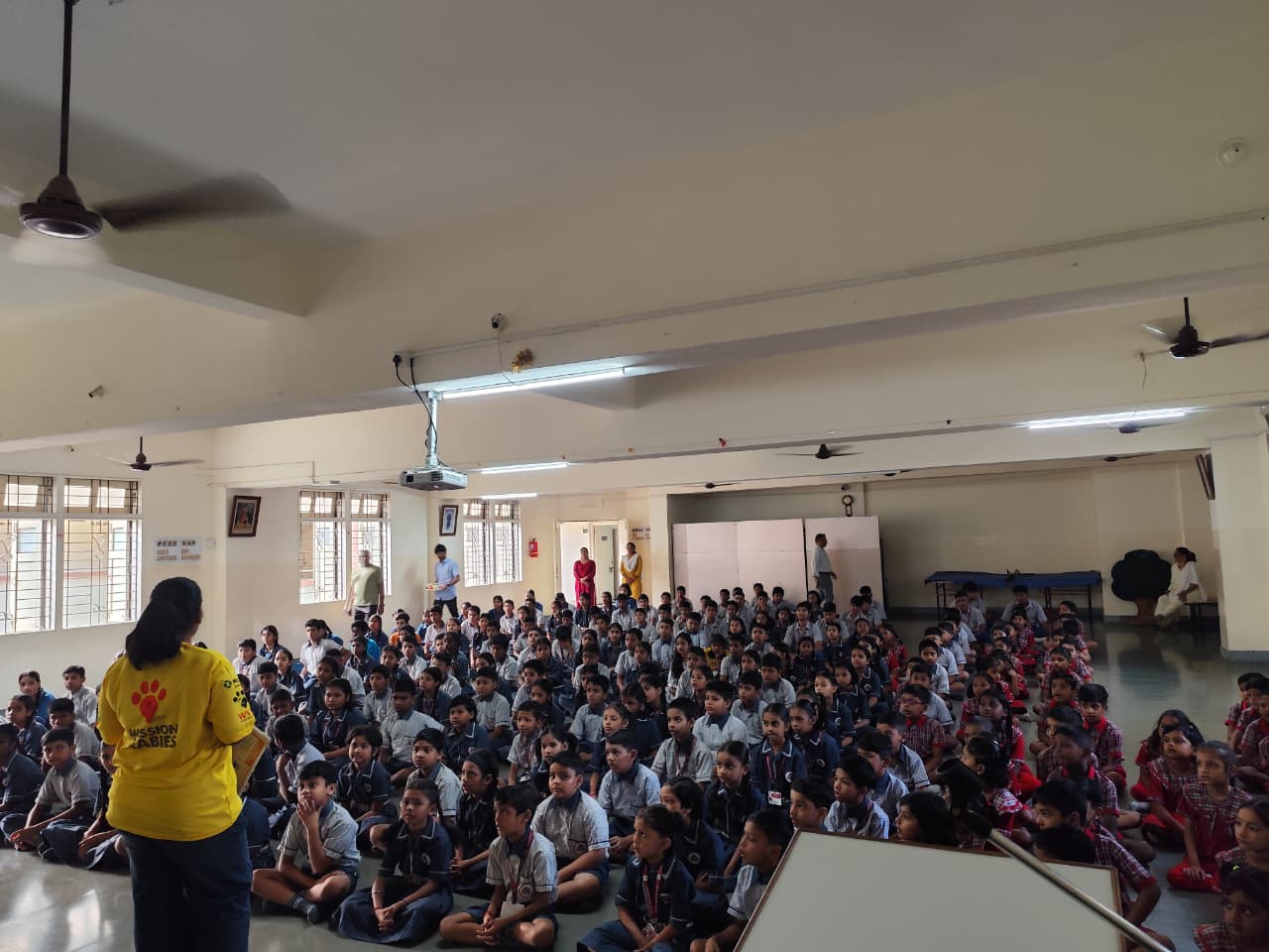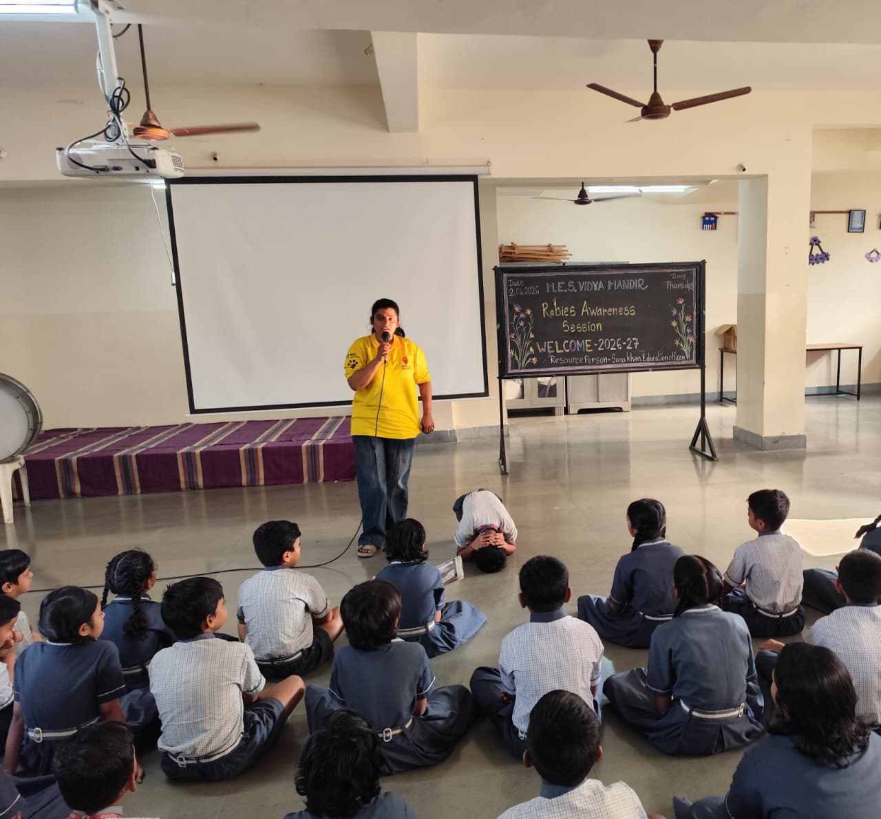 A rabies awareness workshop was conducted by Ms. Sana Khan, Education Officer, Mission Rabies Division, Worldwide Veterinary Services, for students of Std. 1 to 10.