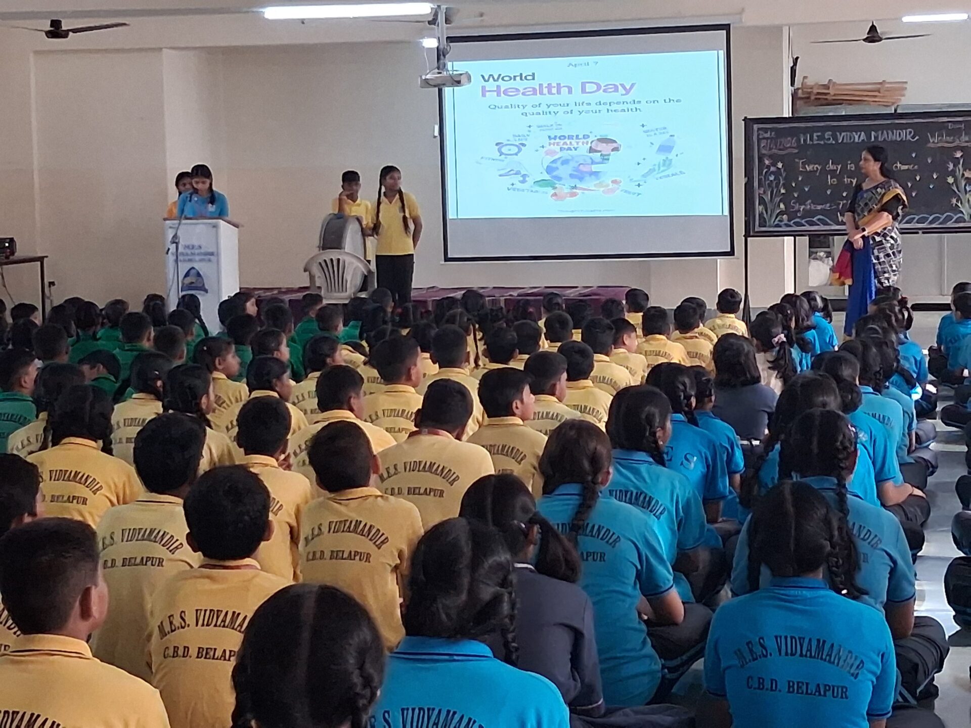 The assembly commenced with a brief introduction highlighting the significance of World Health Day. Students were informed about how this day is observed worldwide to draw attention to important health issues and to encourage people to adopt healthier lifestyles.