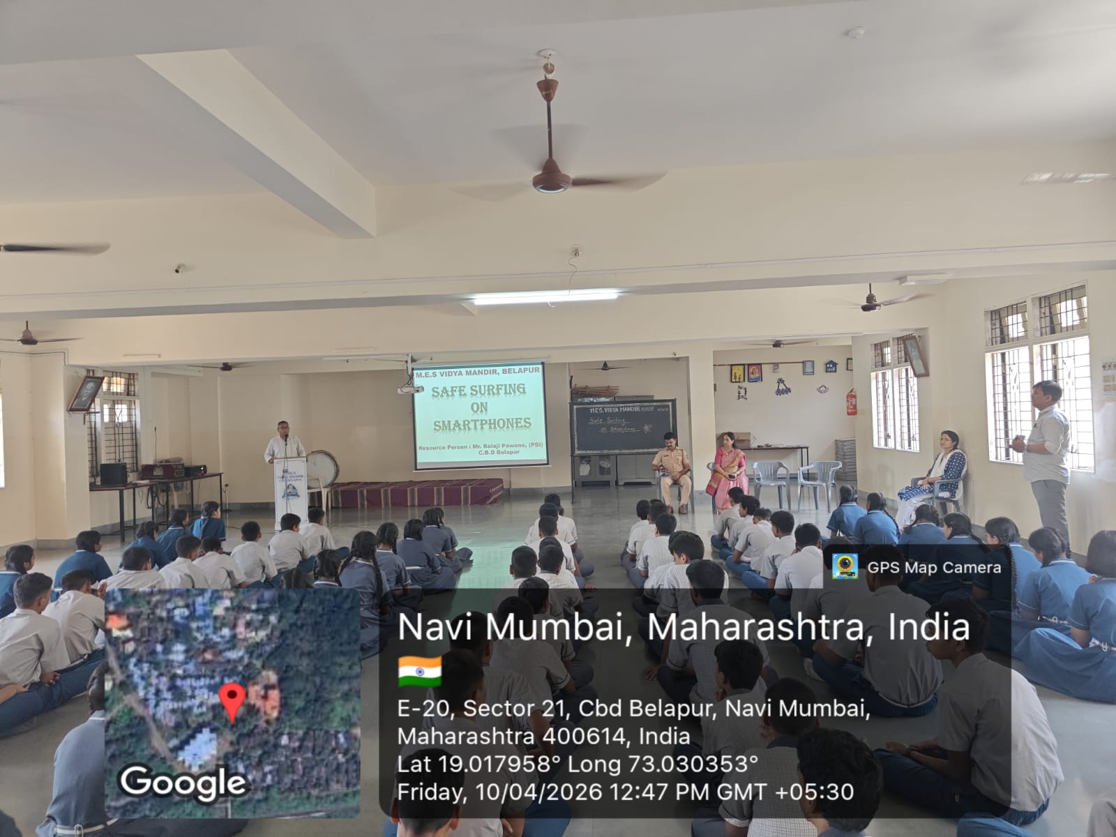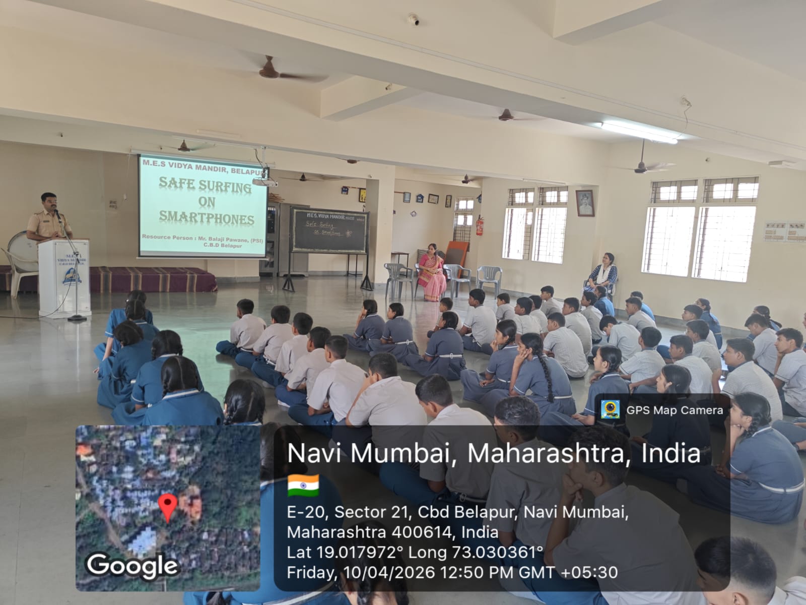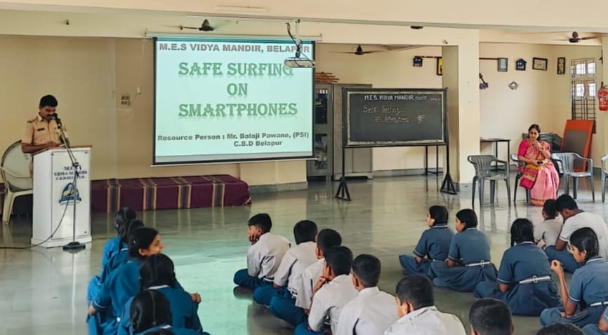 A workshop on Safe Surfing on Smartphones was conducted on 10th April 2026 (Friday) at MES Vidya Mandir, Belapur. The session was led by PSI, Mr. Balaji Pawane from CBD Belapur Police Station, who served as the resource person.