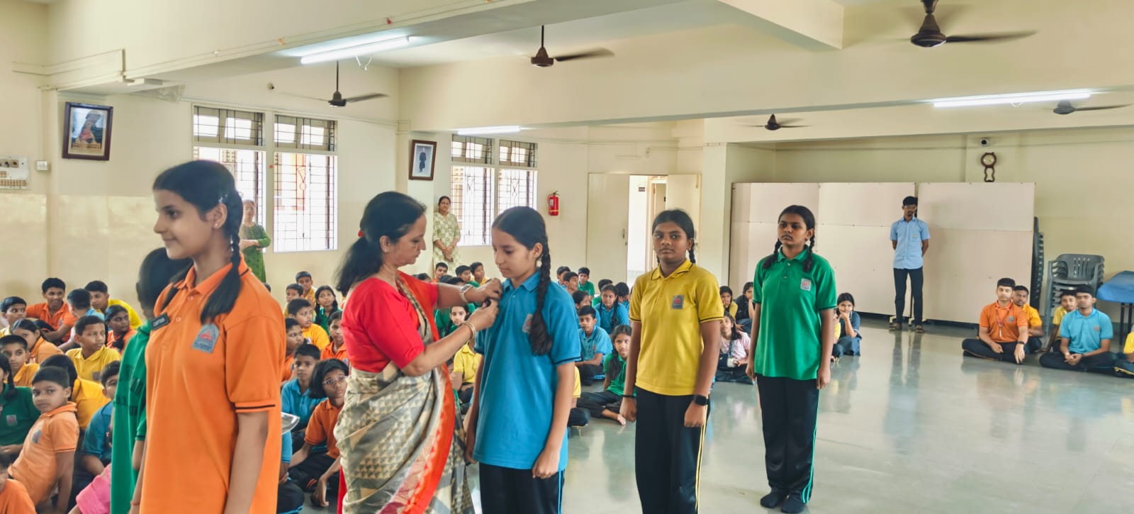 After the results were announced, the Investiture Ceremony was held to officially appoint the elected members. The Principal and teachers addressed the gathering and highlighted the importance of leadership, discipline, and responsibility. The newly elected council members were awarded badges and sashes and took an oath to serve the school sincerely.